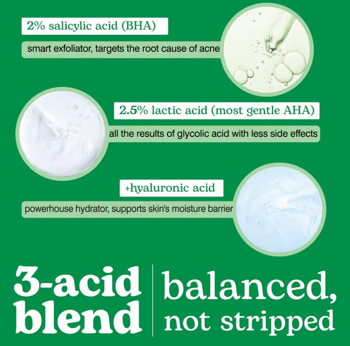 Achieve your clearest skin yet. Our Sebum-control Balancing Serum is powered by 2% salicylic acid, the best BHA for oily and acne-prone skin, and 2.5% lactic acid, the most gentle AHA, highly effective at fading acne scars. It unclogs pores and reduces the look of blemishes, while soothing and hydrating the skin. For a balanced complexion, without strpping. Visible results in 2 weeks